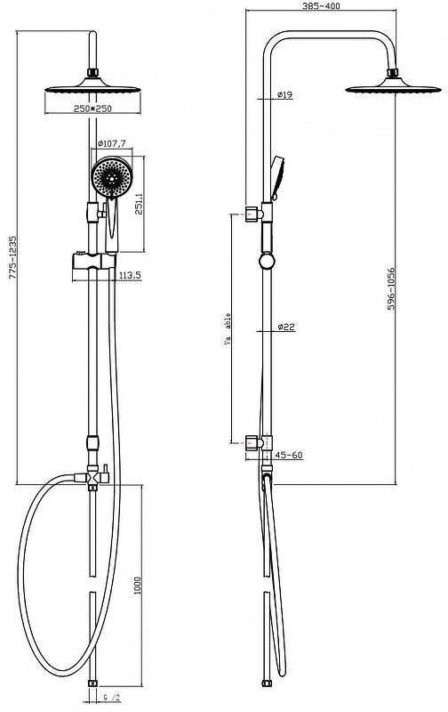 Душевой гарнитур Cersanit Neno черный хром (63477)