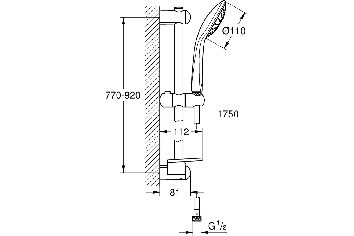 Душевой гарнитур Grohe Euphoria 110 Mono 27267001. Может использоваться с проточным водонагревателем.