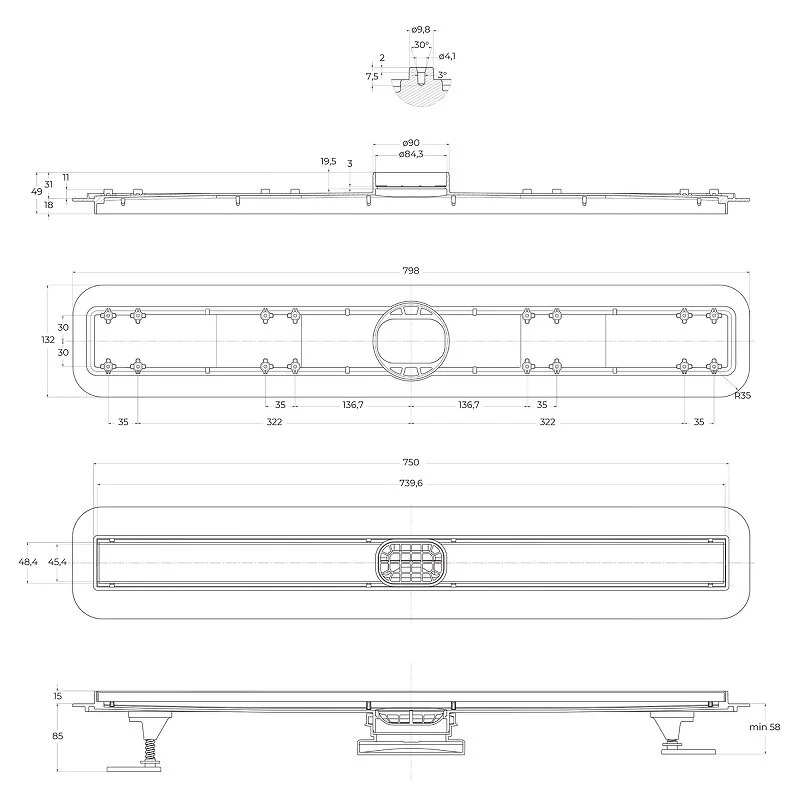 Душевой лоток BelBagno Luce 800 мм хром (BB-LD-Luce-80-CR)