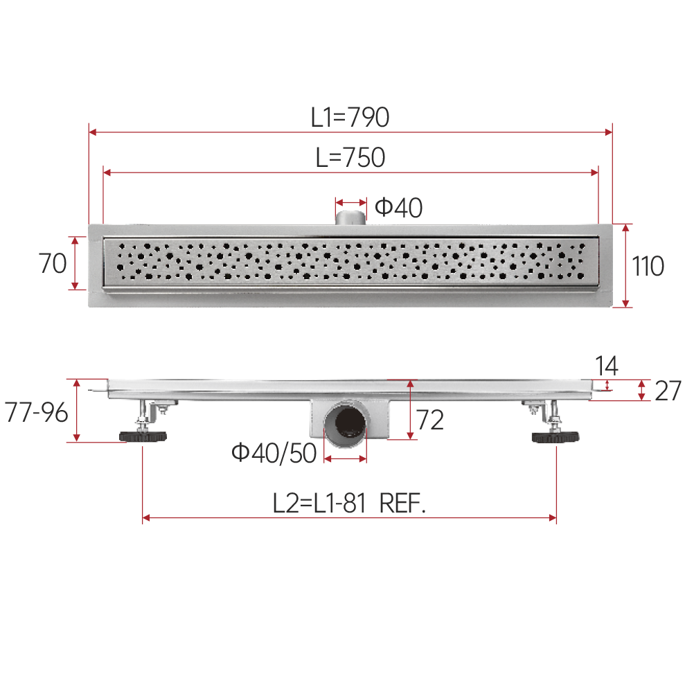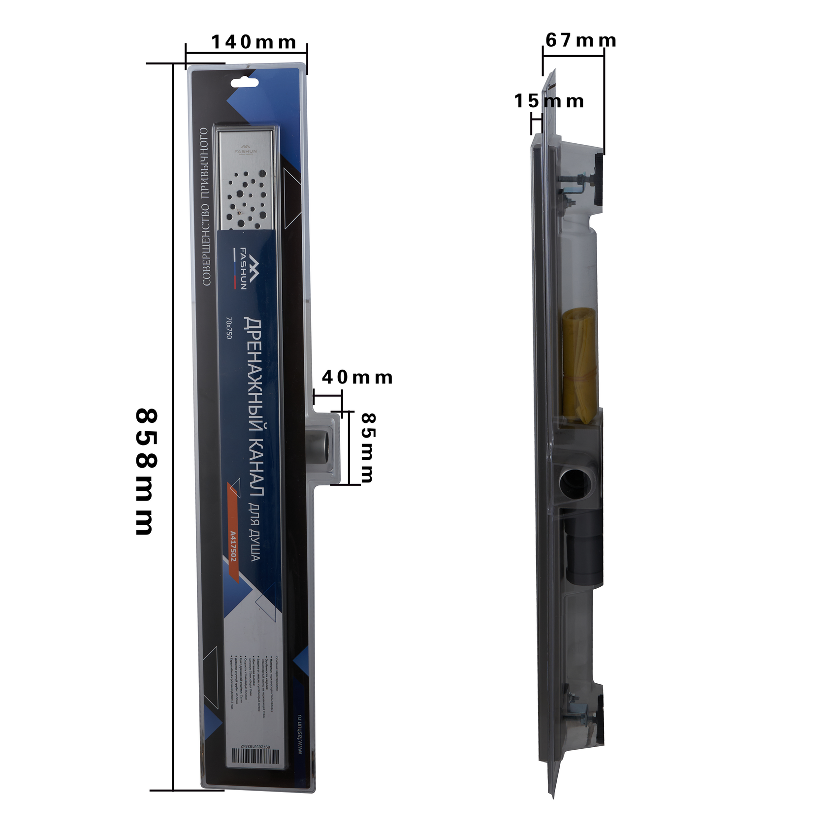 Душевой лоток Fashun 750х70 решётка:SUS304, сифон: SUS304, стационарный (A417502)