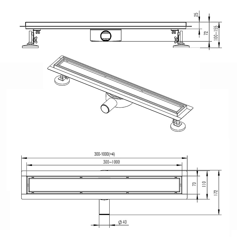 Душевой лоток горизонтальный Azario 360° 500 D40(50) под плитку хром