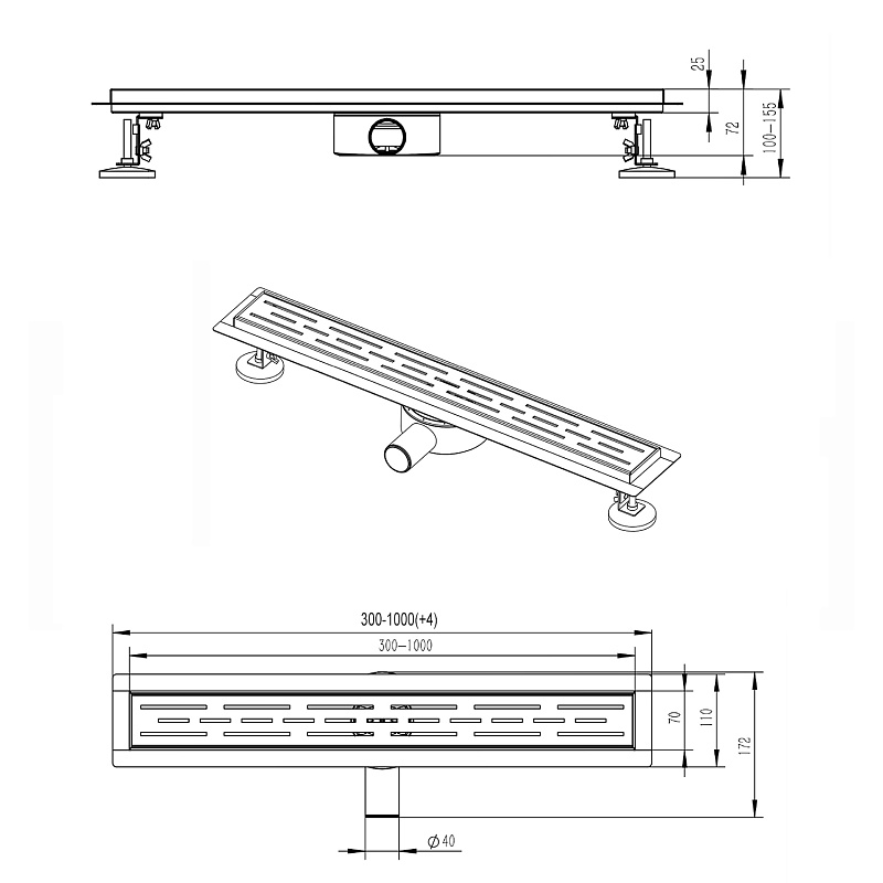 Душевой лоток горизонтальный Azario 360° 600 D40(50) с решеткой черный