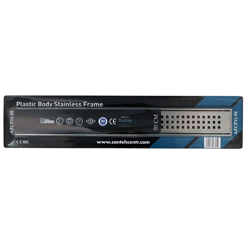 Душевой лоток горизонтальный Azario 800 выход 40 Cube хром