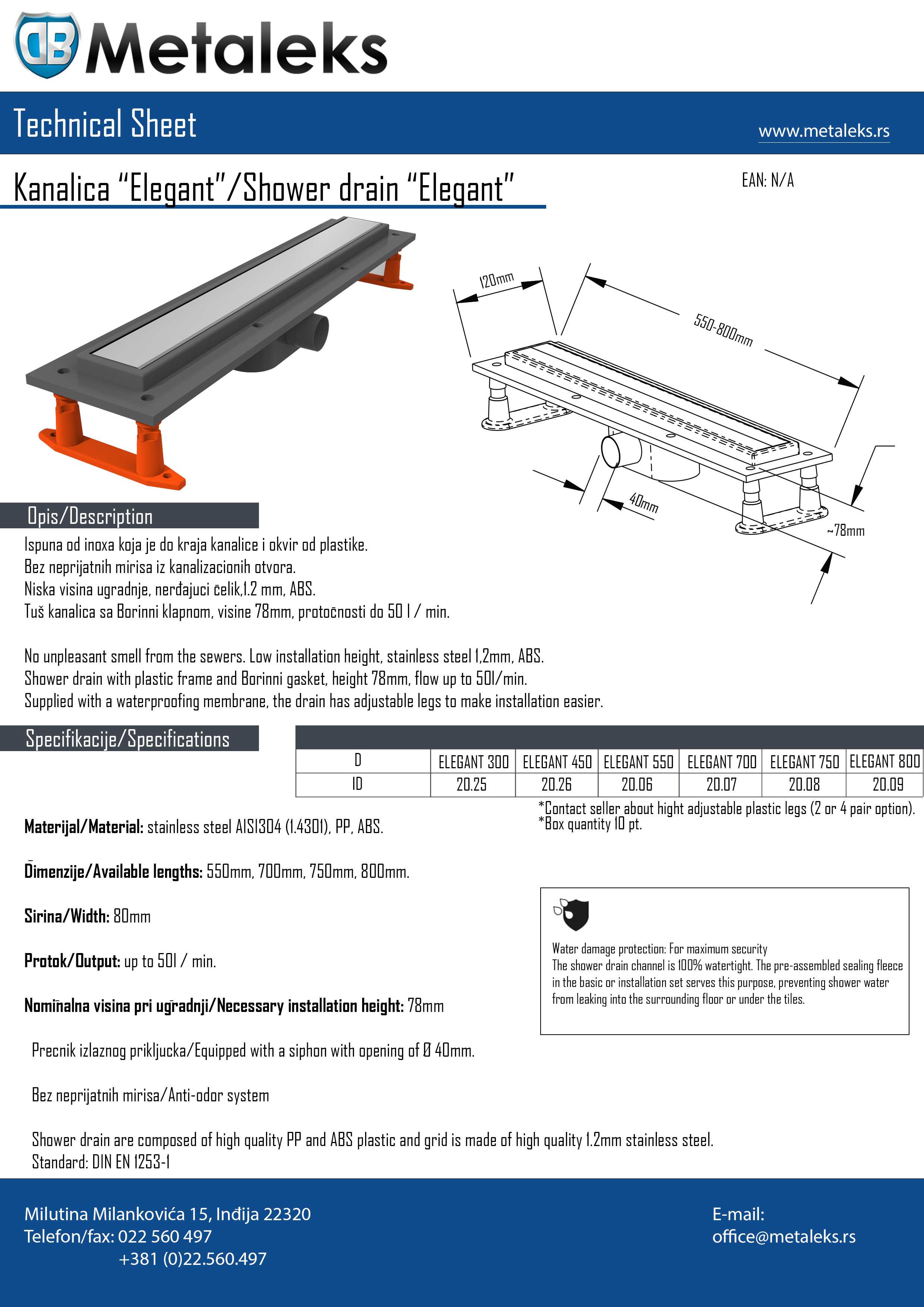 Душевой лоток Metaleks Elegant 450 с сухим затвором (20.26 )