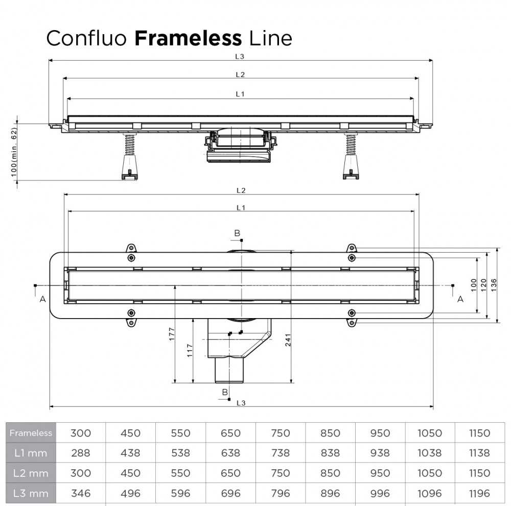 Минимальная монтажная высота, мм: - 62