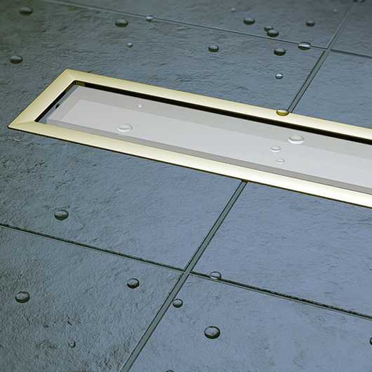 Душевой лоток Pestan Confluo Premium Line 450 White Glass Gold хром матовый/белое стекло глянец, рамка зол (13100120)