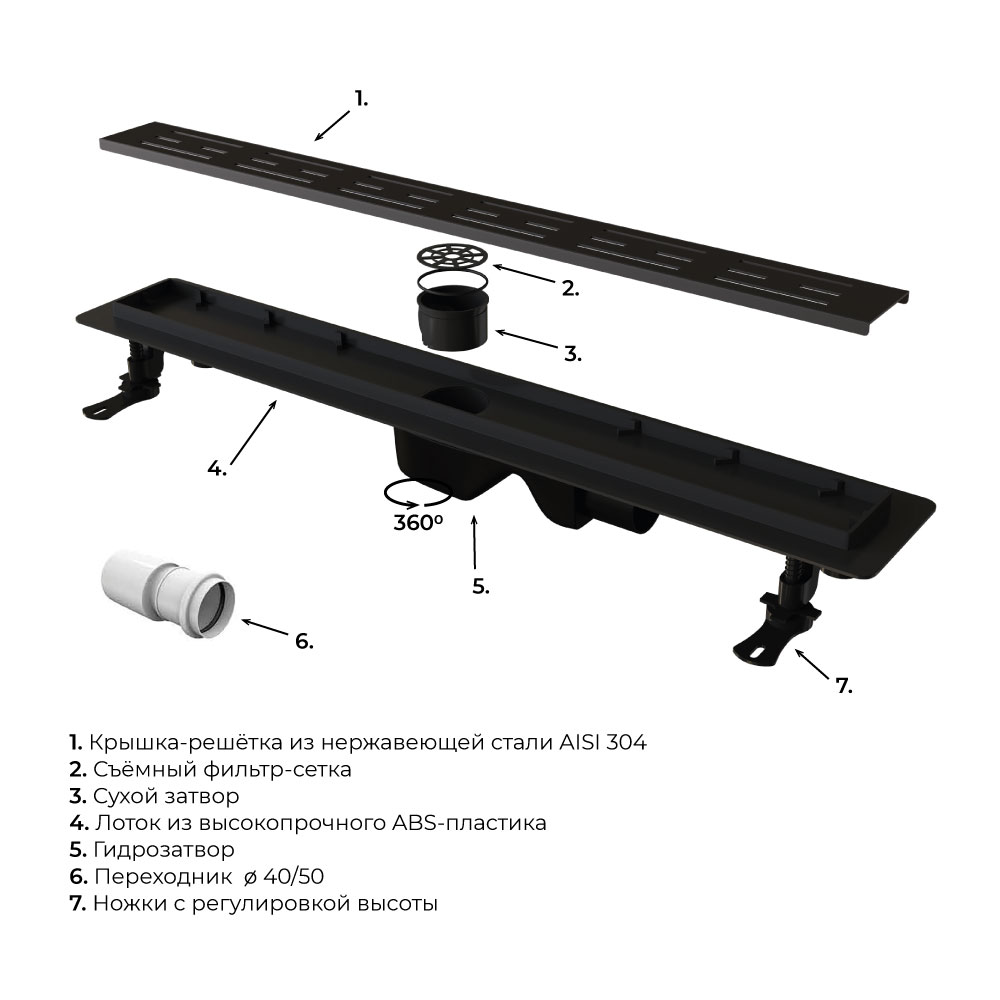 Душевой лоток RGW Drain Leo 600 черный (60213060-04)