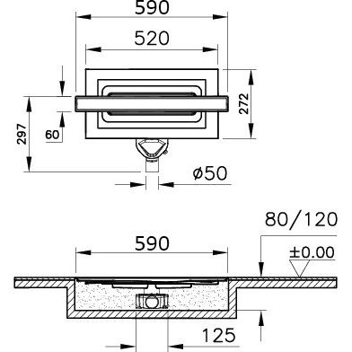 Душевой лоток Vitra Eco-Flow 60 см DK100 горизонтальный сифон 60 мм матовый хром (59980480000)