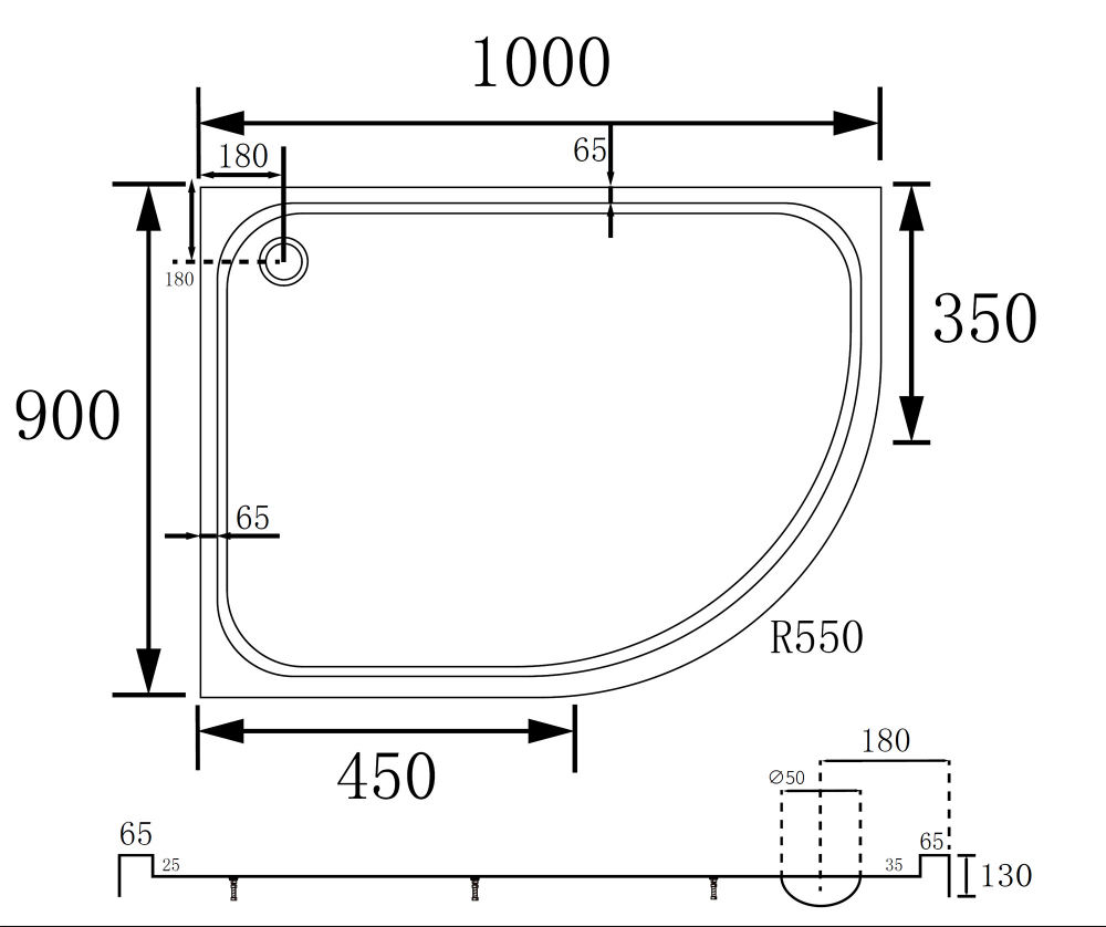 Душевой поддон Abber L 100х90 белый (AD3E109 L)