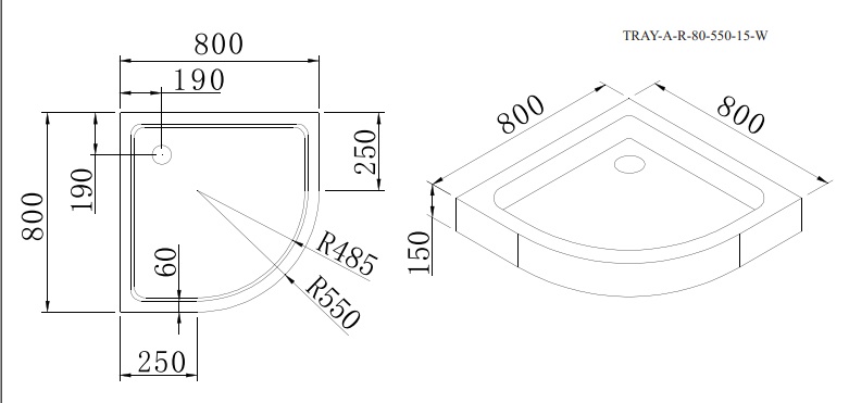 Поддон акриловый, радиальный (полукруглый), R-550.