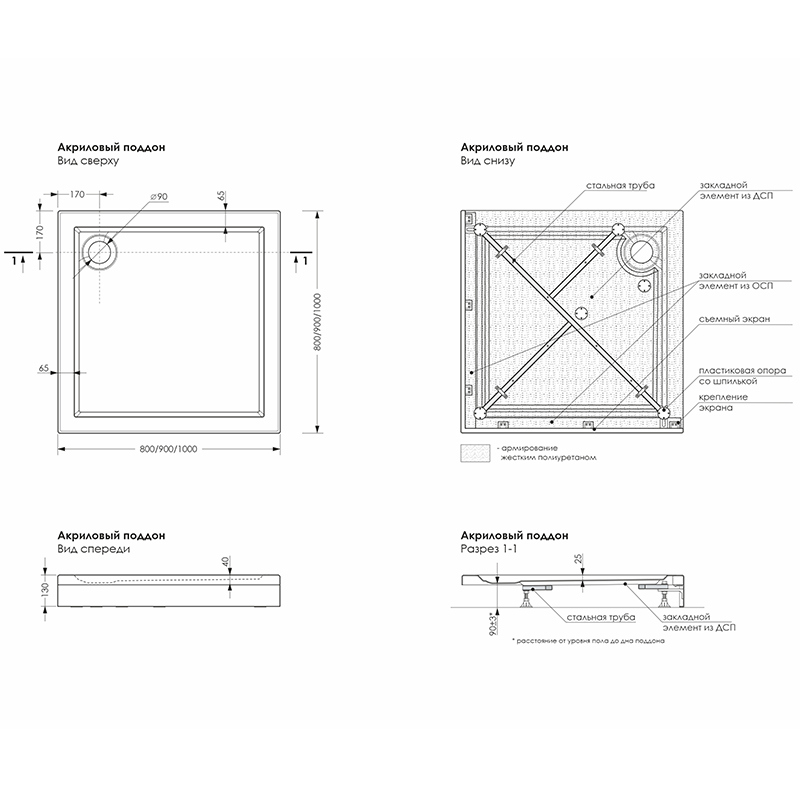 Современный, стильный, элегантный! Данный поддон обязательно привлечет внимание и никого не оставит равнодушным! Низкий душевой поддон белоснежного цвета будет гармонично сочетаться с любыми дизайнерскими решениями в ванной комнате, привнося в интерьер определенный шик и утонченность. Поддон оснащен съемным экраном, что обеспечивает легкий доступ к коммуникациям. Устанавливается данный поддон на сварной металлический каркас с 5-ю опорами, что позволяет выдерживать нагрузку 300 кг. Изготовлен поддон на высокотехнологичном немецком оборудовании из сантехнического акрила, обеспечивающего антибактериальную поверхность. С внешних сторон усилен жестким полиуретаном, что придает поддону прочность и экологичность покрытия. Идеально гладкая поверхность не требует усилий в уходе. Защитная пленка на внутренней поверхности поддона и гофрокороб обеспечивают сохранность при транспортировке.