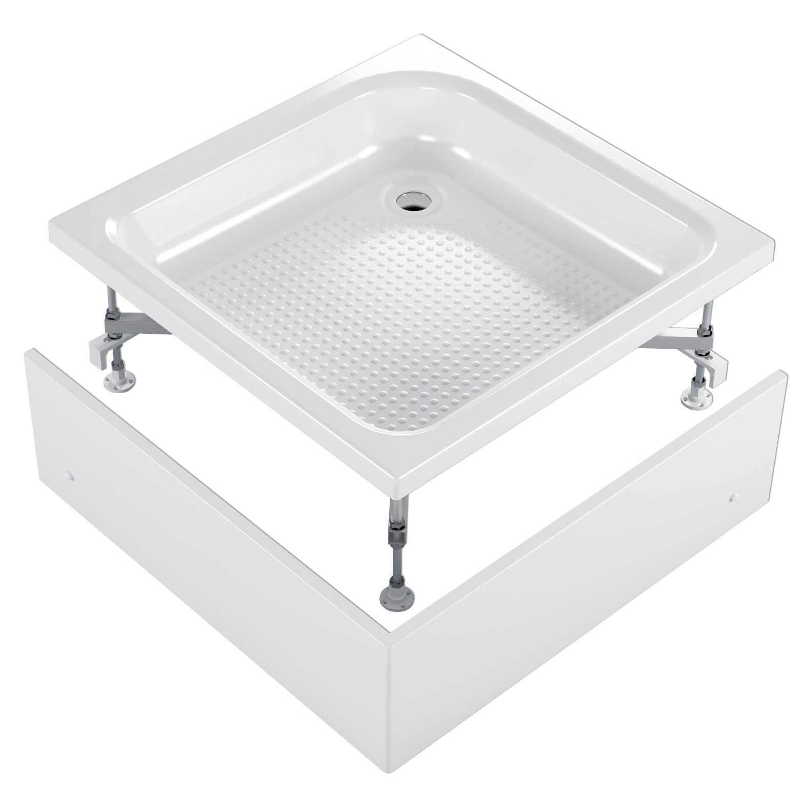 Данный поддон имеет возможность регулировки высоты до 0.5 см, а также дополнительную фиксацию к стенам.