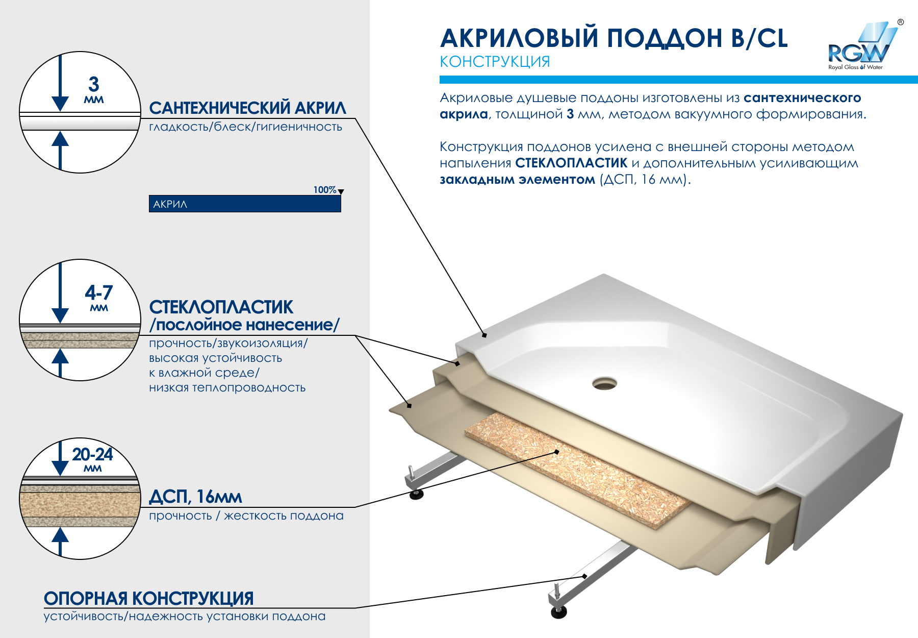 Душевой поддон RGW Acryl B/CL-S 90x90 белый (16180199-51)