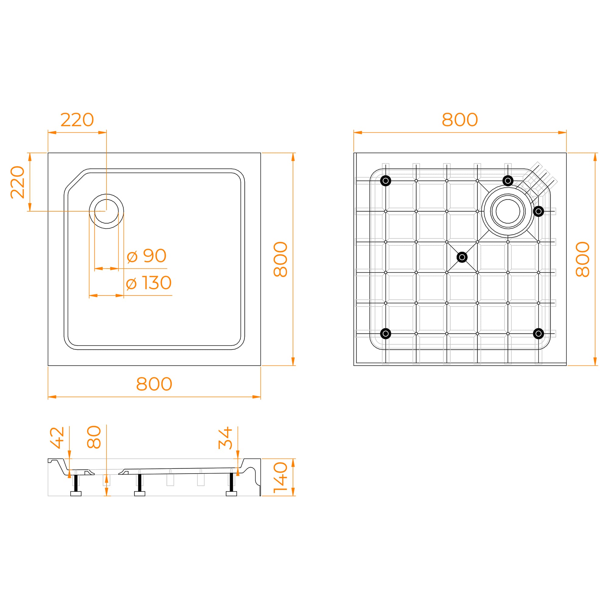 Поддоны оснащены литыми экранами, что позволит скрыть сливную систему, а наличие в комплекте ножек с регулировкой высоты, позволит быстро и легко установить поддон и начать его использовать.