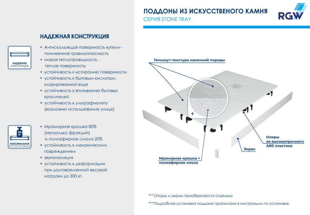Душевой поддон RGW Stone Tray ST-W 80x160 белый (16152816-01)