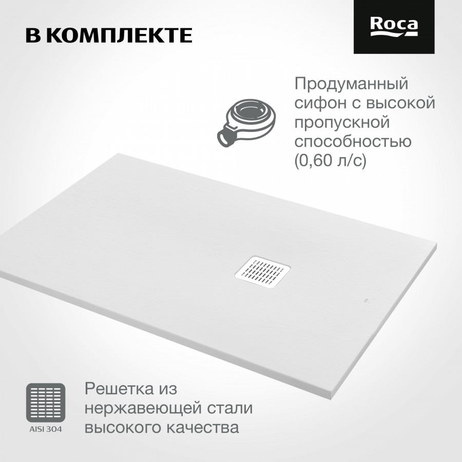 Душевые поддоны, выполненные из Stonex®, прочного и долговечного материала, предлагают широкий выбор размеров. Текстурированная отделка под камень надежно предотвращает скольжение на поверхности душевого поддона о создает приятные тактильные ощущения. Четкие линии кромок и ровная поверхность гарантируют идеальное прилегание поддонов к стене и ограждениям. Безупречно прямые углы душевых поддонов обеспечивают полную интеграцию с настенной и напольной плиткой. Изделия демонстрируют отличные показатели качества и высокую стойкость к воздействию химических, абразивных и чистящих средств. Чтобы поддерживать изделие в идеальном состоянии, достаточно регулярно промывать душевой поддон мыльной водой.