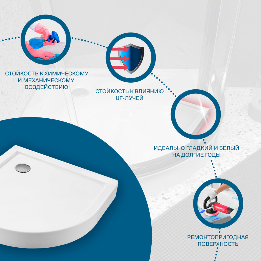 Новая серия душевых поддонов Палермо выполнена из 100% акрила. Лаконичные современные формы, продуманная высота и функциональность поддона создадут комфорт в ванной комнате. Качественное армирование поддона, стойкость материала к загрязнениям и уф-лучам обеспечивает использование поддона на долгие годы. В состав поставки входят регулируемые ножки, а также высококачественный сифон.
