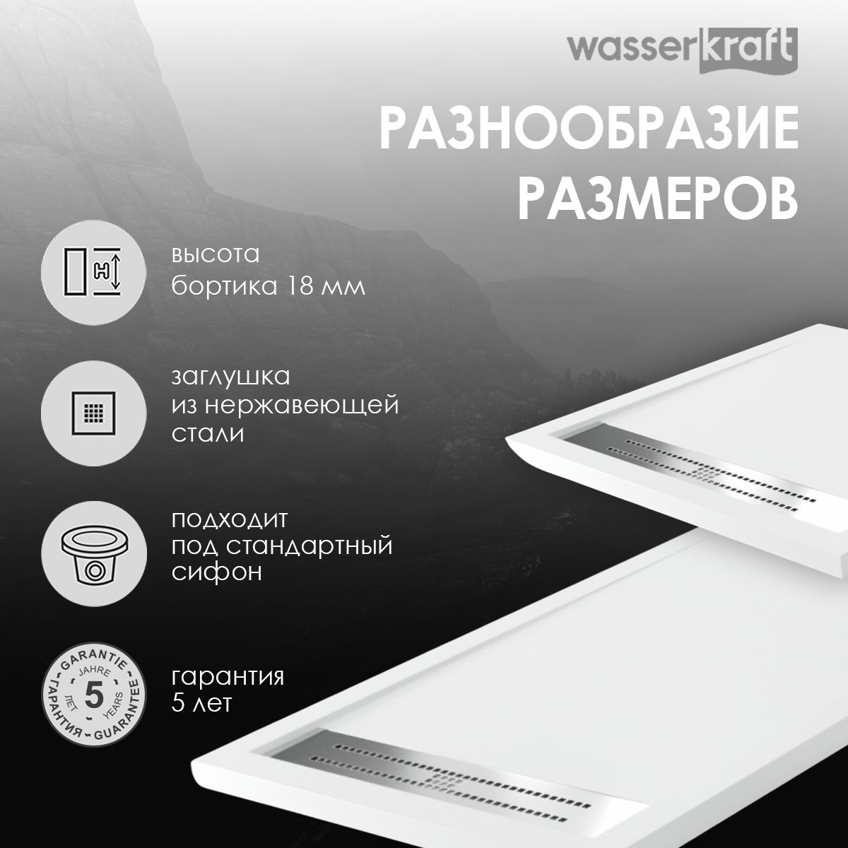 Цвет - белый матовый, Выдерживают вес max. 400 кг., Высота бортика 23 mm