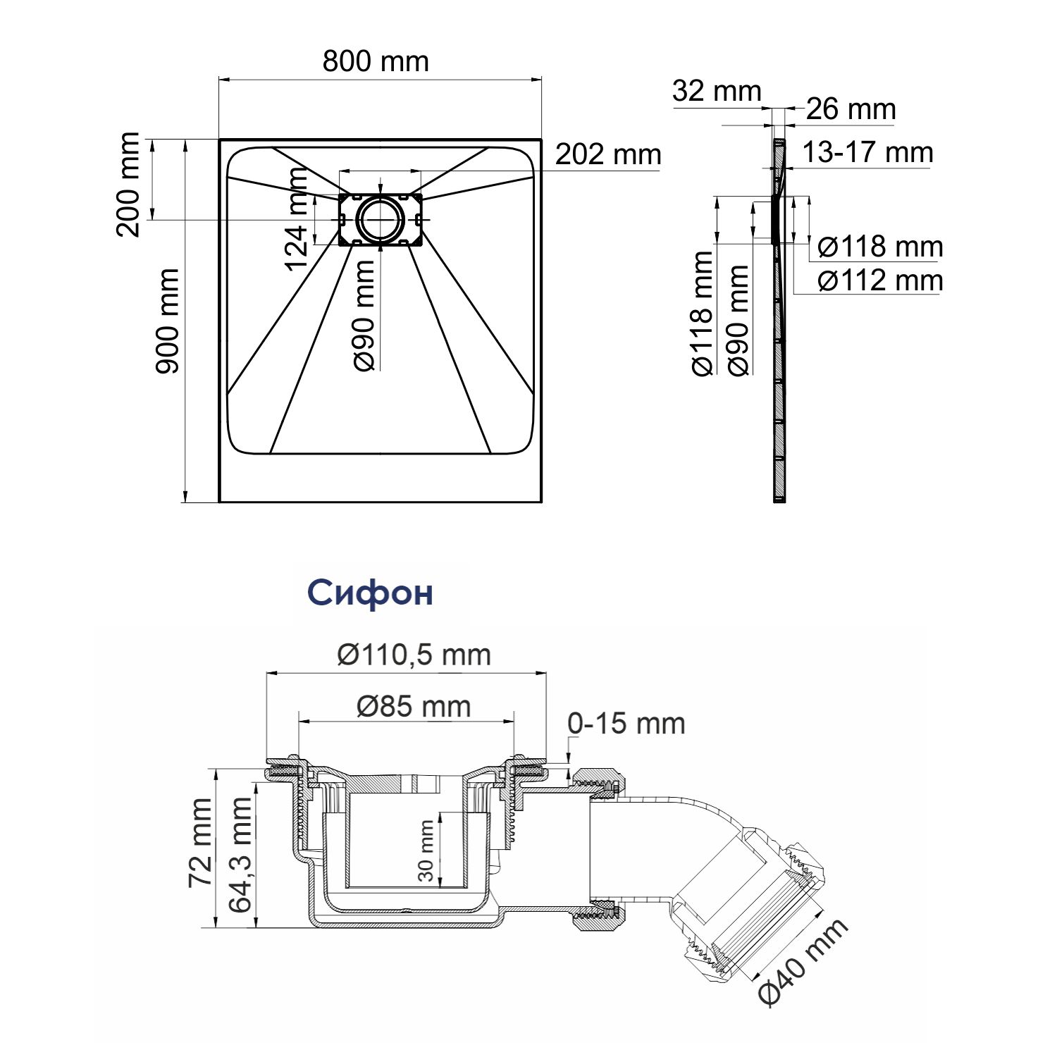 Душевой поддон WasserKRAFT Elbe 90х2,6х80 черный (74T20)
