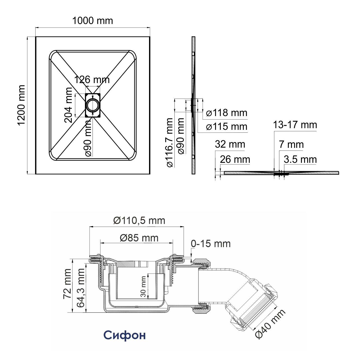 Душевой поддон WasserKRAFT Main 120х2,6х100 белый (41T10)