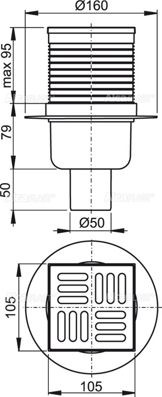 Душевой трап Alcaplast 105*105/50 прямой сток, решетка нержавеющая сталь, гидрозатвор комбинированный SMART (APV32)