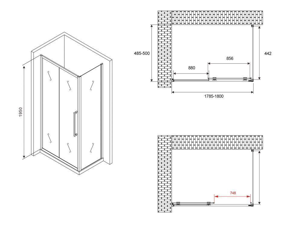 Душевой уголок Abber Diamant 180x195x50 стекло прозрачное, профиль черный (AG30180BH-S50B)