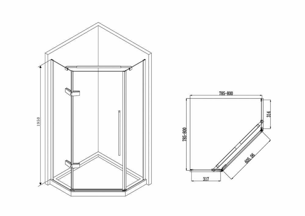 Душевой уголок ABBER Ewiges Wasser 80*80 стекло прозрачное, профиль хром (AG05080)