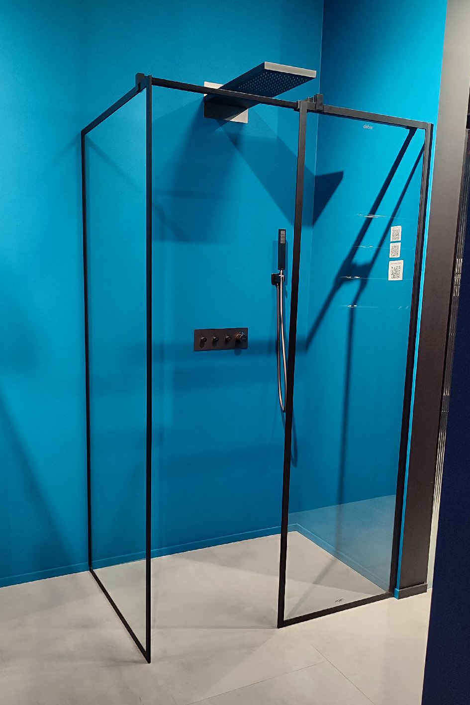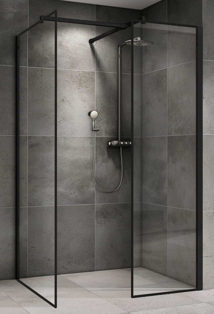 Душевой уголок Abber Immer Offen 80x80x200 стекло прозрачное, профиль черный (AG67128B)