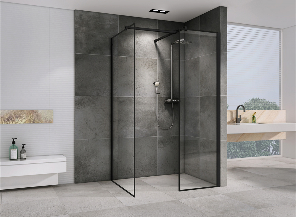 Душевой уголок Abber Immer Offen 90x90x200 стекло прозрачное, профиль черный (AG67129B)