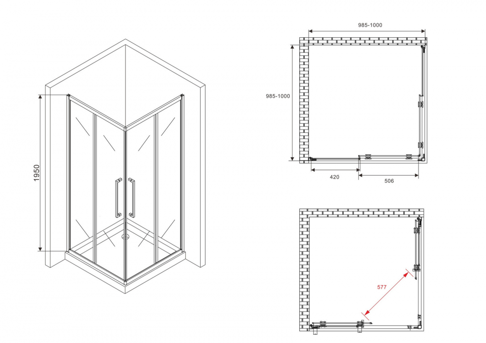 Душевой уголок Abber Schwarzer Diamant 100x100x195 стекло матовое, профиль черный (AG02100BMH)