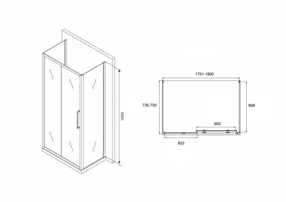 Душевой уголок Abber Schwarzer Diamant 75x180 стекло прозрачное, профиль черный (AG30180BH-S75B-S75B)