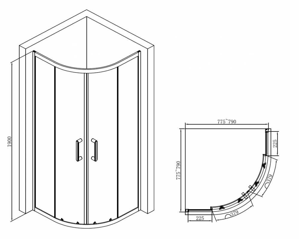 Душевой уголок ABBER Schwarzer Diamant 80*80 стекло прозрачное, профиль черный (AG01080B)
