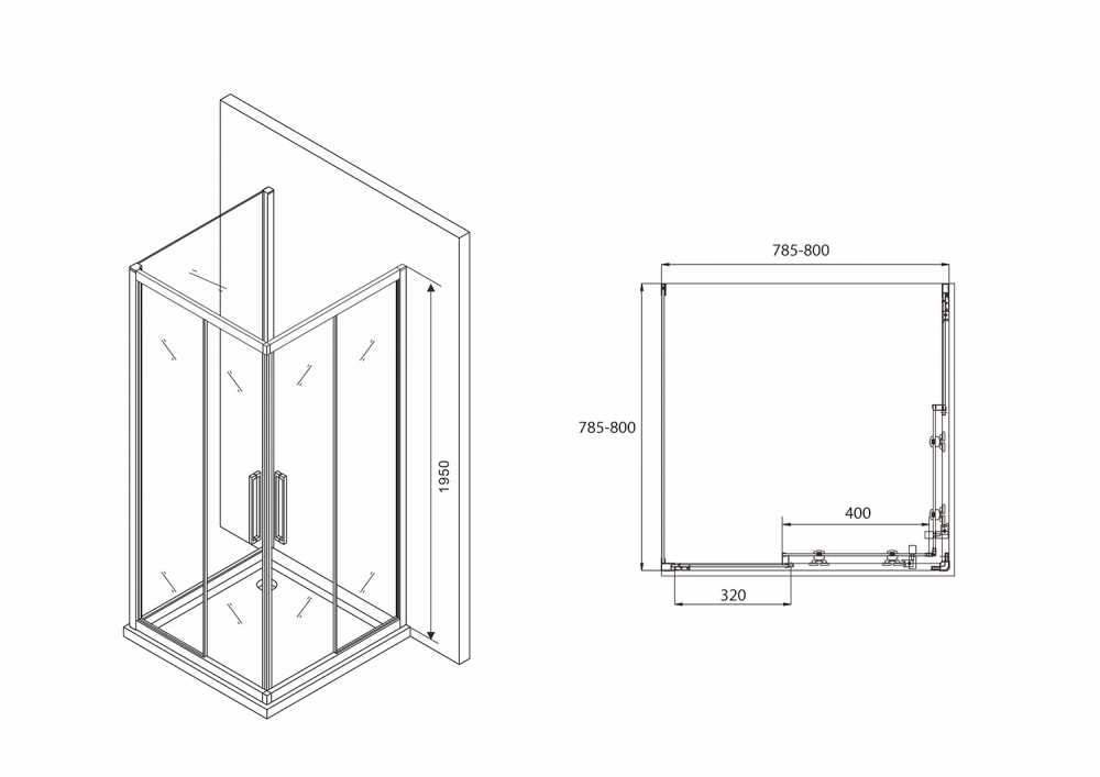 Душевой уголок Abber Schwarzer Diamant 80x80 стекло прозрачное, профиль черный (AG02080BH-S80B)