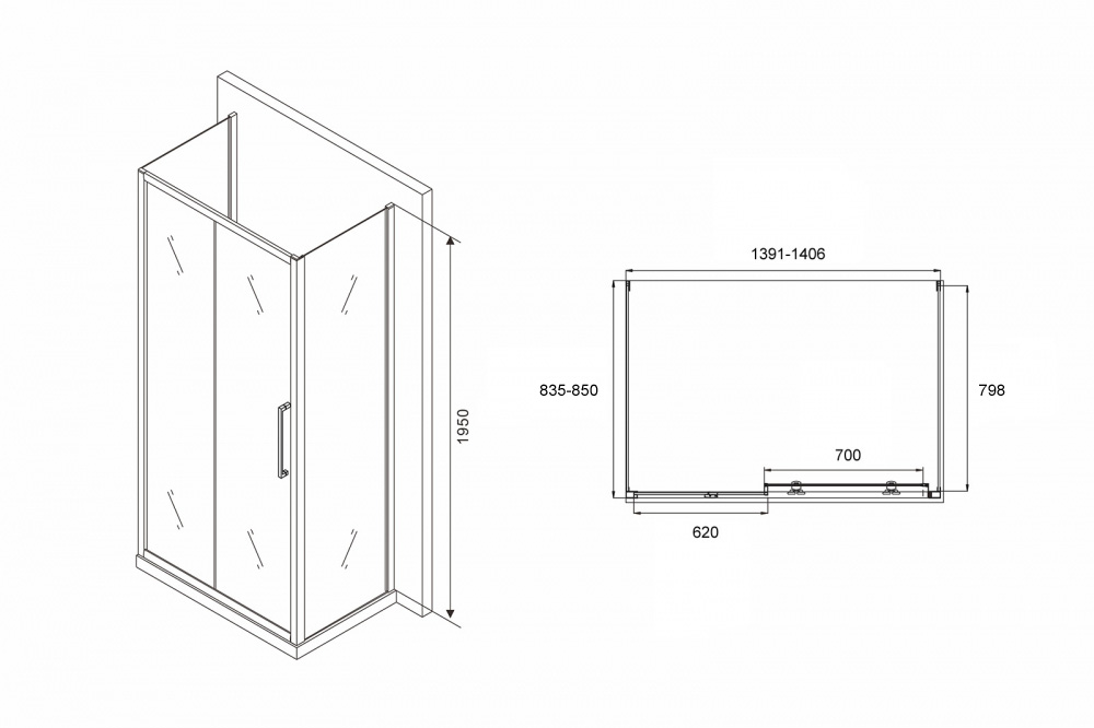 Душевой уголок Abber Schwarzer Diamant 85x140 стекло прозрачное, профиль профиль хром (AG30140H-S85-S85)