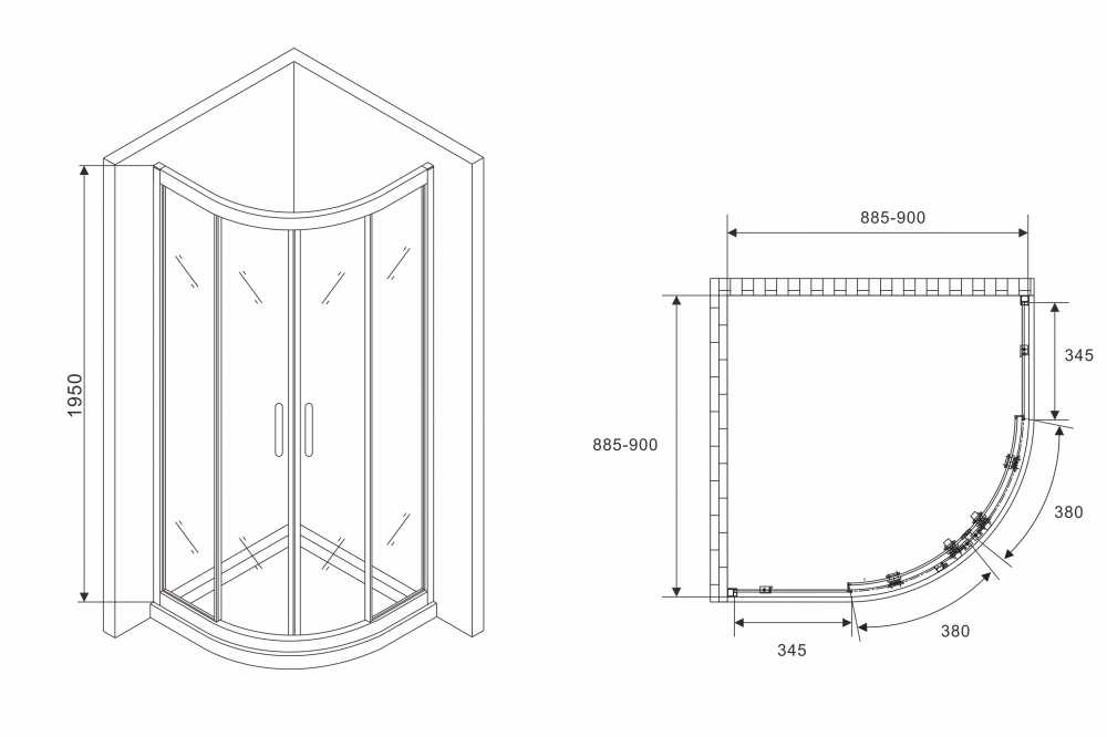 Душевой уголок Abber Schwarzer Diamant 90x90 стекло матовое, профиль профиль хром (AG01090M)