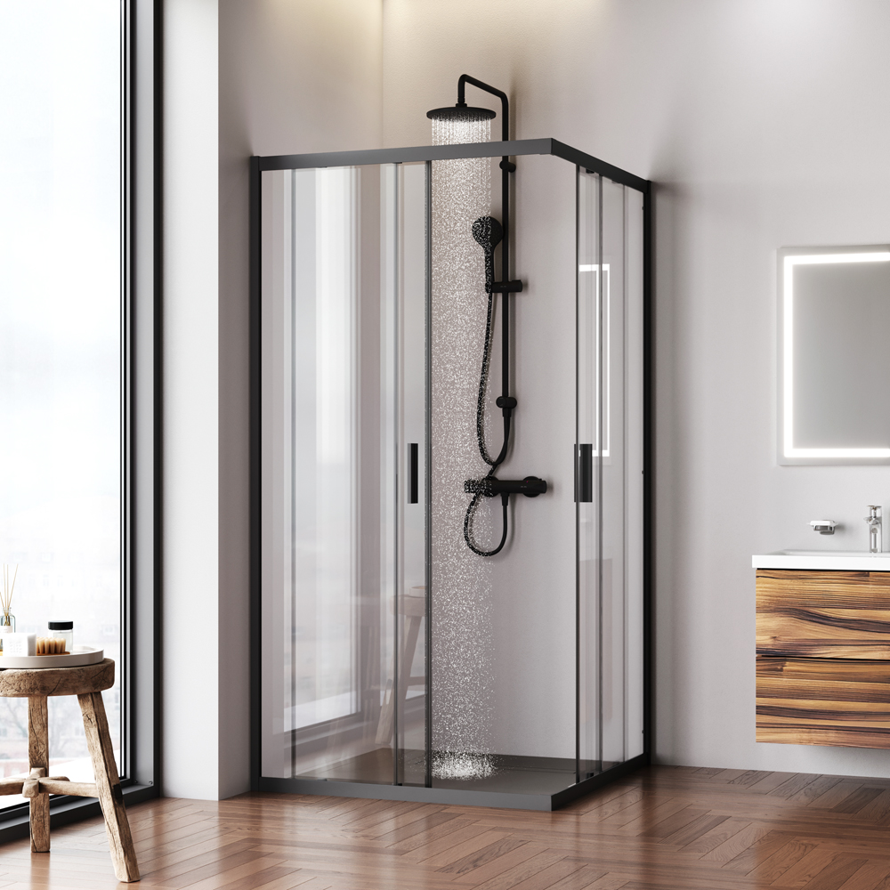 Душевой уголок AM.PM Gem 100x100x195 стекло прозрачное, профиль черный матовый (W90G-403-100100-BT)