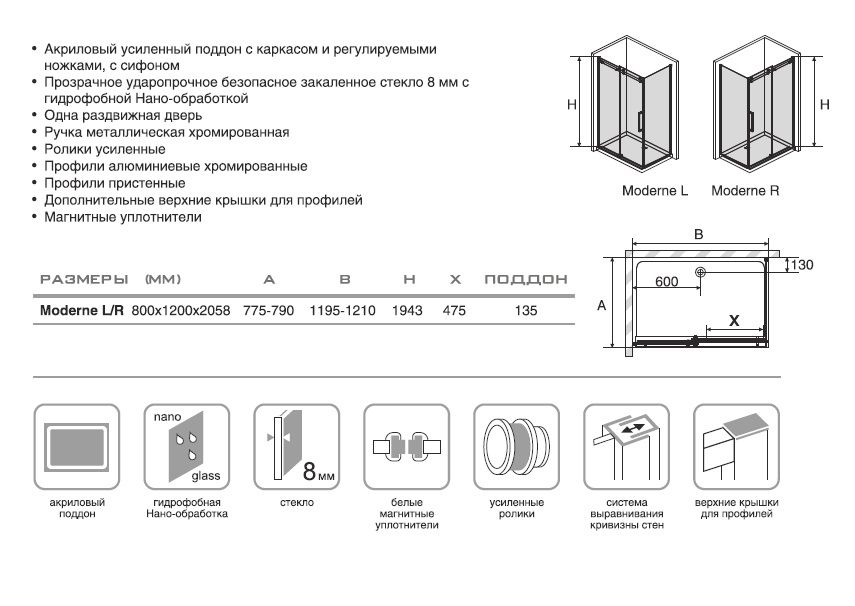 Душевой уголок Avek Moderne 1200*800 стекло прозрачное, профиль хром (10448)