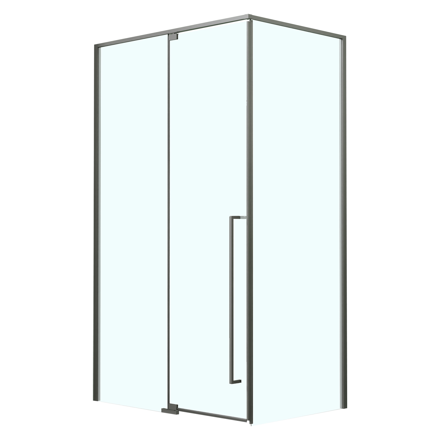 Квадратный или прямоугольный душевой уголок, с одной распашной дверью, на усиленных универсальных поворотных петлях из нержавеющей стали.