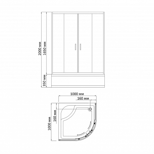 - Высокий акриловый поддон на раме с сифоном