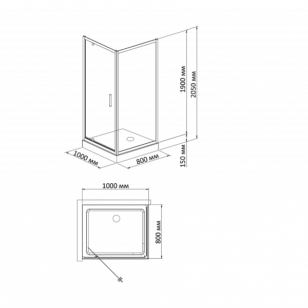 - Низкий акриловый поддон на раме с сифоном Rectangular 810