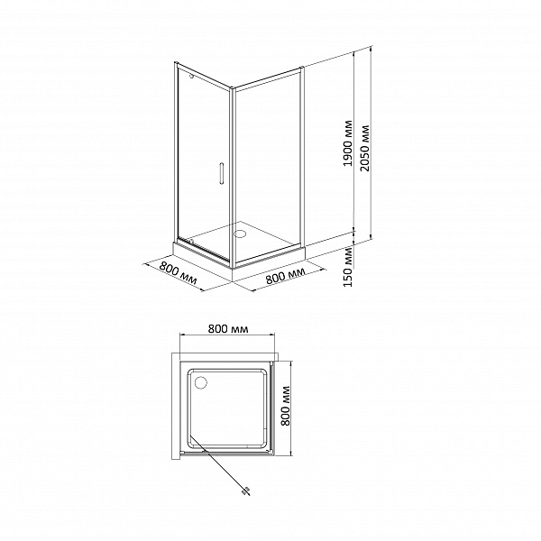 - Низкий акриловый поддон на раме с сифоном Square 88