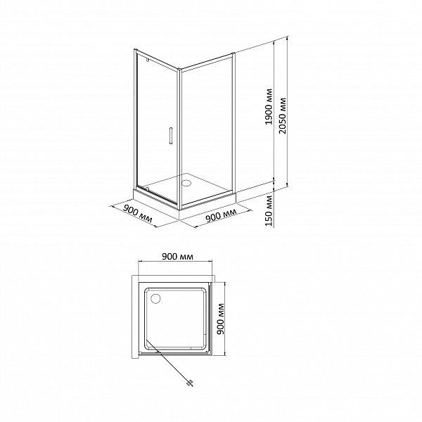 - Низкий акриловый поддон на раме с сифоном Square 99