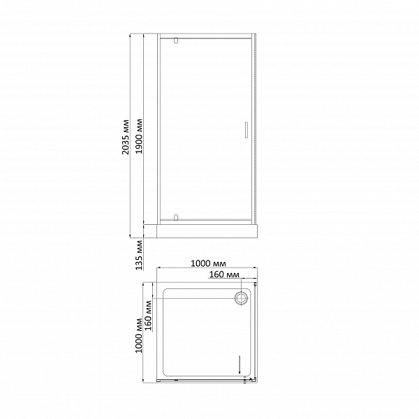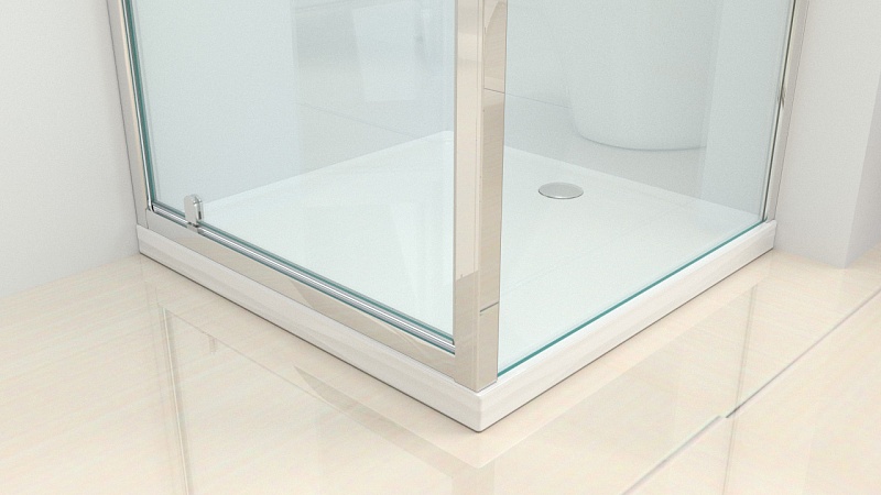 - Низкий акриловый поддон на раме с сифоном