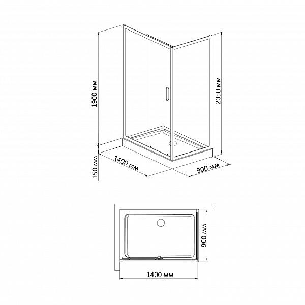 - Низкий акриловый поддон на раме с сифоном Rectangular 914