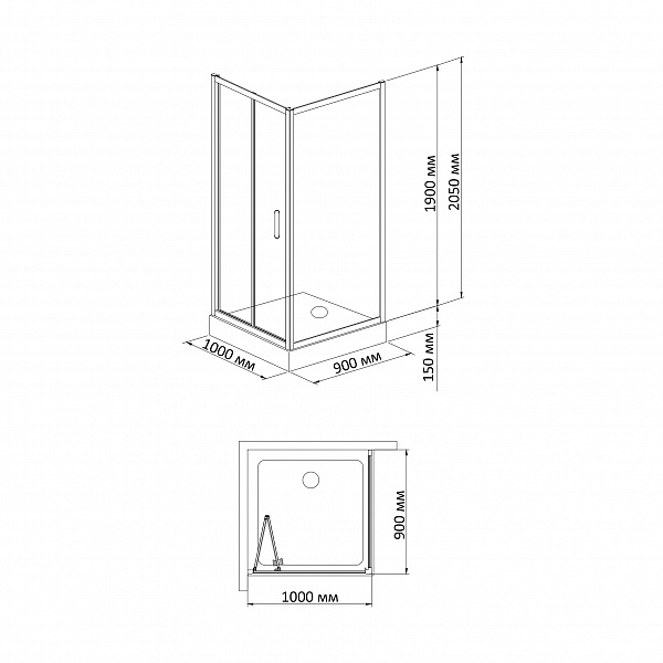 - Низкий акриловый поддон на раме с сифоном Rectangular 910