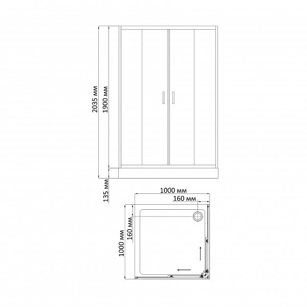 - Низкий акриловый поддон на раме с сифоном