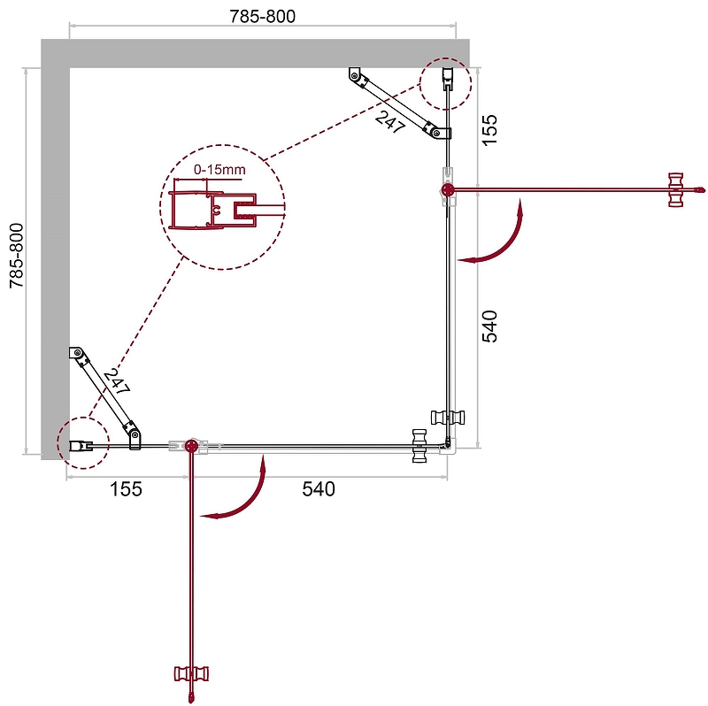 Душевой уголок BelBagno Etna 80x80 стекло прозрачное, профиль хром (ETNA-A-22-80-C-Cr)