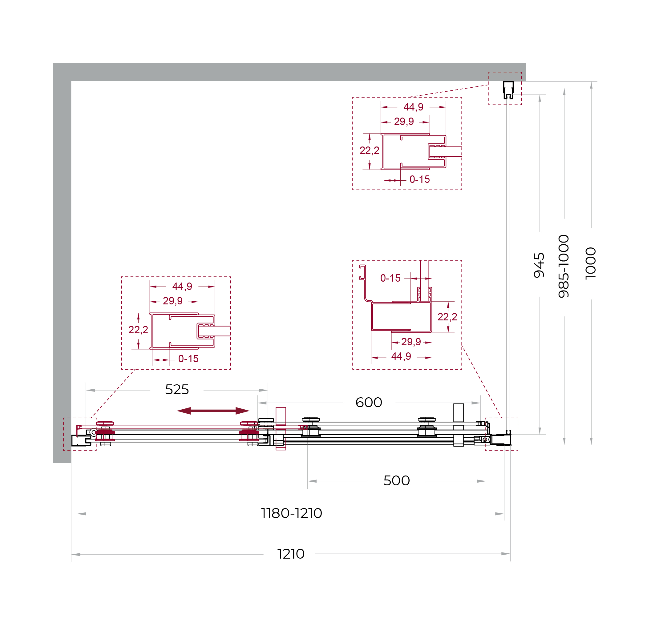 Раздвижные двери оборудованы одинарными роликами увеличенного диаметра, корпуса которых изготовлены из прочного сплава Zamak (цинко-алюминиево-магниево-медного состава) и нержавеющей стали. Такая комбинация материалов обеспечивает длительную и надежную эксплуатацию механизмов.