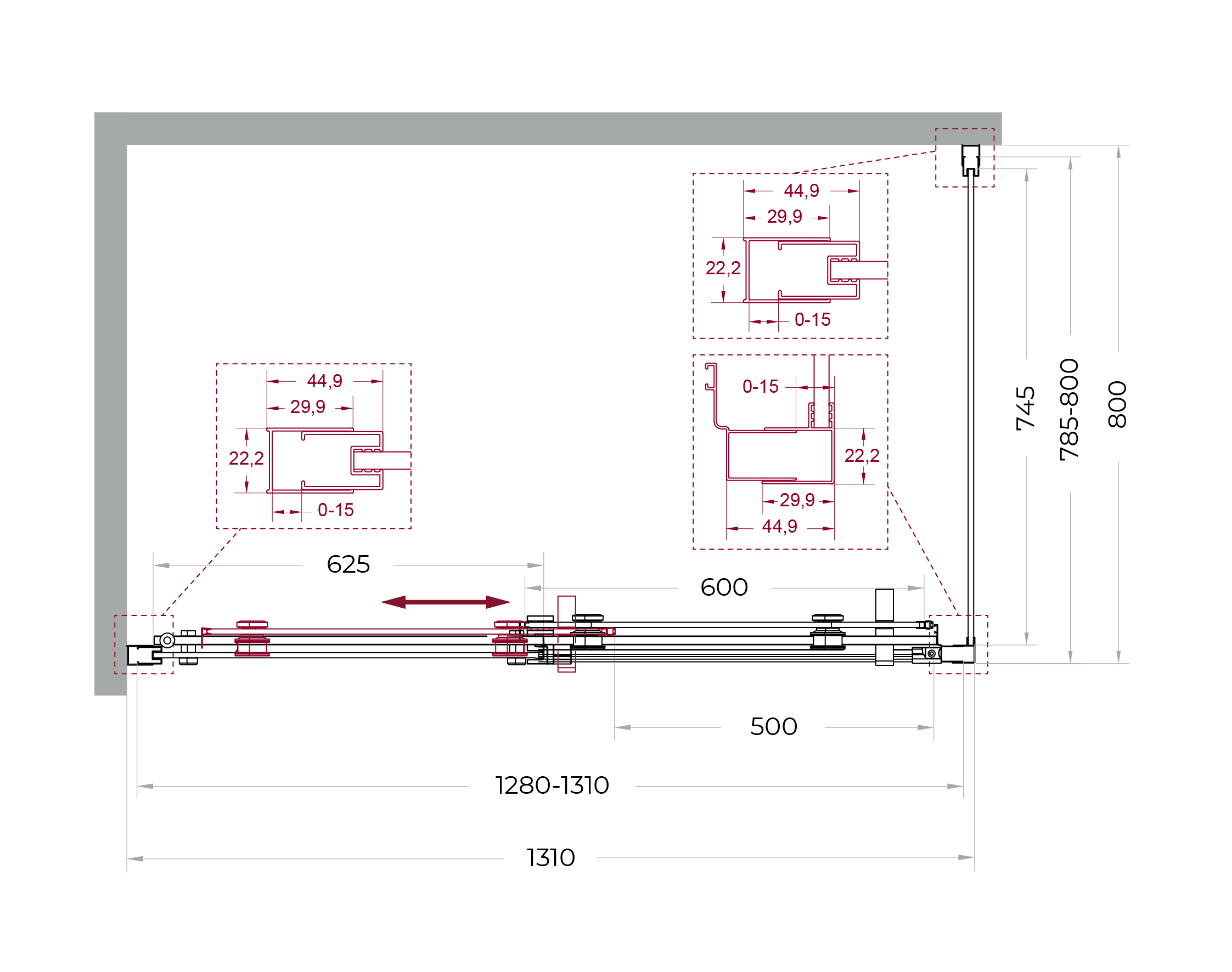 Раздвижные двери оборудованы одинарными роликами увеличенного диаметра, корпуса которых изготовлены из прочного сплава Zamak (цинко-алюминиево-магниево-медного состава) и нержавеющей стали. Такая комбинация материалов обеспечивает длительную и надежную эксплуатацию механизмов.