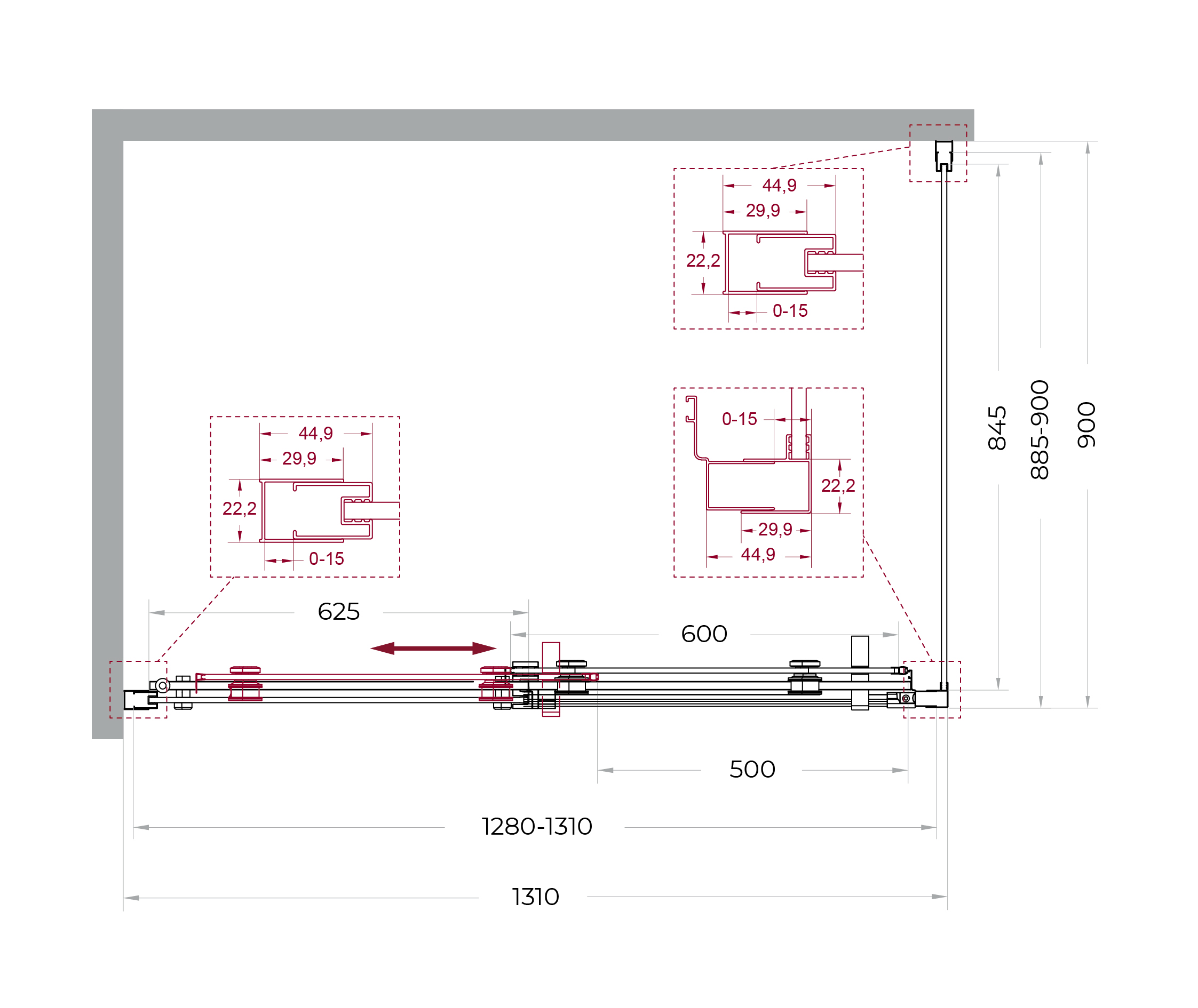 Раздвижные двери оборудованы одинарными роликами увеличенного диаметра, корпуса которых изготовлены из прочного сплава Zamak (цинко-алюминиево-магниево-медного состава) и нержавеющей стали. Такая комбинация материалов обеспечивает длительную и надежную эксплуатацию механизмов.